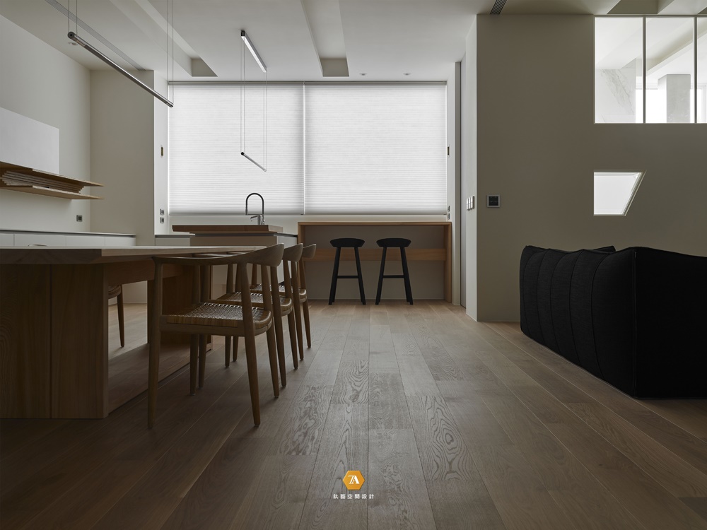 減去繁復的材料製造堆疊,僅以木料適宜的平均分配,在水平垂直之間展現層次分明,輪廓的模樣漸變,不僅聯袂著空間溫度,也凝視視線焦點,生活因此溫潤。
