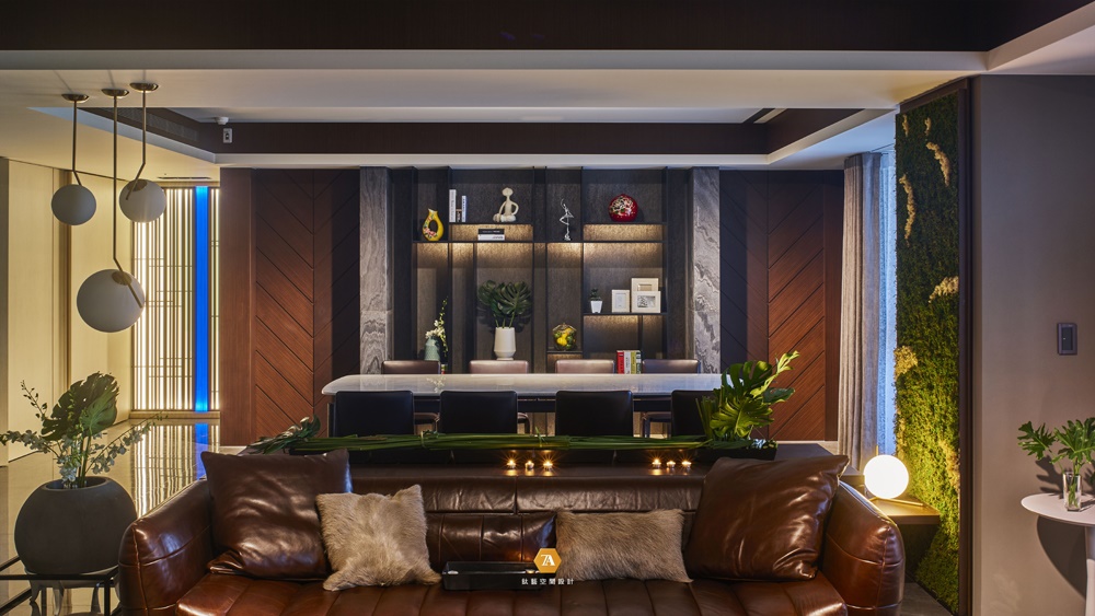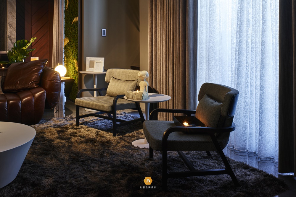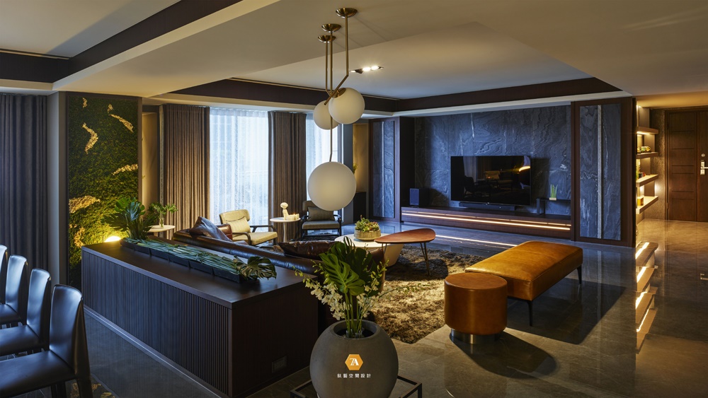 人文主義思想家蒙田說過:「一切隱逸的目的,我相信都如出一轍:要更安閑、更舒適地生活。」設計總監 黃靜文 秉持人文主義關懷,致力為業主量身打造舒適安閑的生活情調。鐵件設計品延續別樣的藝術質感,而山水石壁以優美的姿態蜿蜒東方千年的神秘,與西方華貴唯美的金屬質感壁貼一起為屋主織出時尚不失內斂,奢華又富人文氣質的休閑生活宅邸。