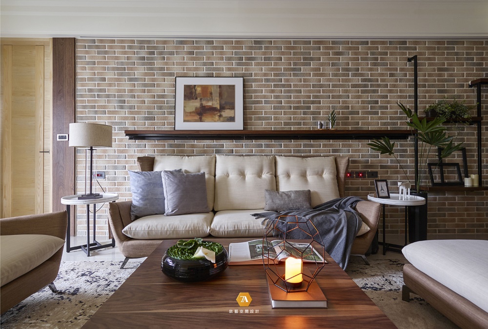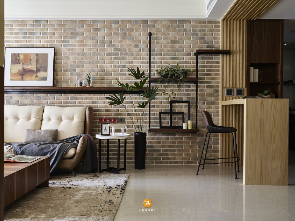 推門入室,便能感受到一股愜意,閑暇的氣息迎面撲來。文化磚鋪貼的沙發背景墻映入眼簾,設計師將上世紀的時代元素融入設計之中,為業主營造出熟悉的環境氛圍,勾起人們無限回憶;同時設計師又加入鐵件、綠植以及木質建材,淡化空間年代感,豐富空間感受。