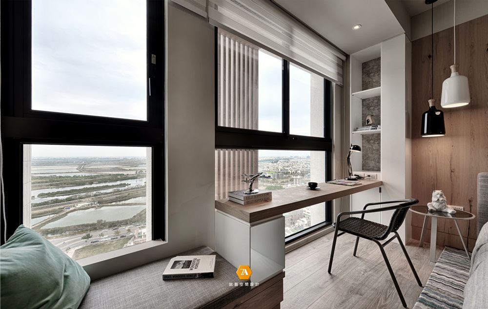 來到次臥,溫潤的氣息彌漫而至,透出簡明潔凈的場域格調。設計師有效利用空間格局,由天花板延伸墻面而下直至桌面,創造流暢的收納動線。靠窗處設置一席臥榻,陽光灑落、一本書、一杯茶;閑時獨坐何等愜意,靜享浮生半日閑。