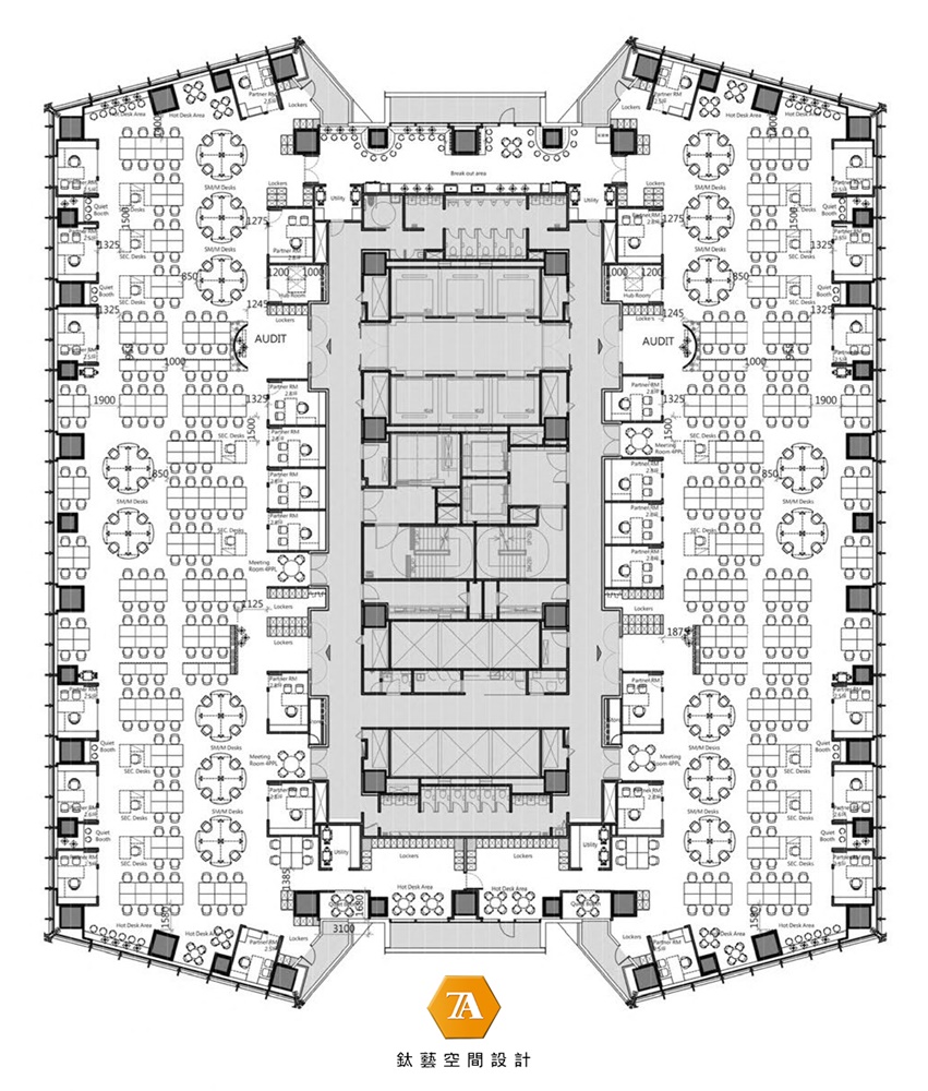 一棟當代商業大樓有沒有更多變化的可能?設計師用細膩的設計之心告訴我們,無須劃地自限。本案中將自然透析為綠意、木石和天空,藉由許多喻意十足的象征手法,精確地榫接大塊聯想與鋼筋水泥;仔細疊合兩種場景想象,讓空間既是充滿效率的辦公場所,亦是清朗無邊的自然世界。設計師結合人心需求及品牌形象,使原始的生命力於冷硬樓房內蔓延生長,逐日成長為現代心靈的柔軟沃土,並帶領每日深入其中的人們,一見品牌視野中的廣闊境地。