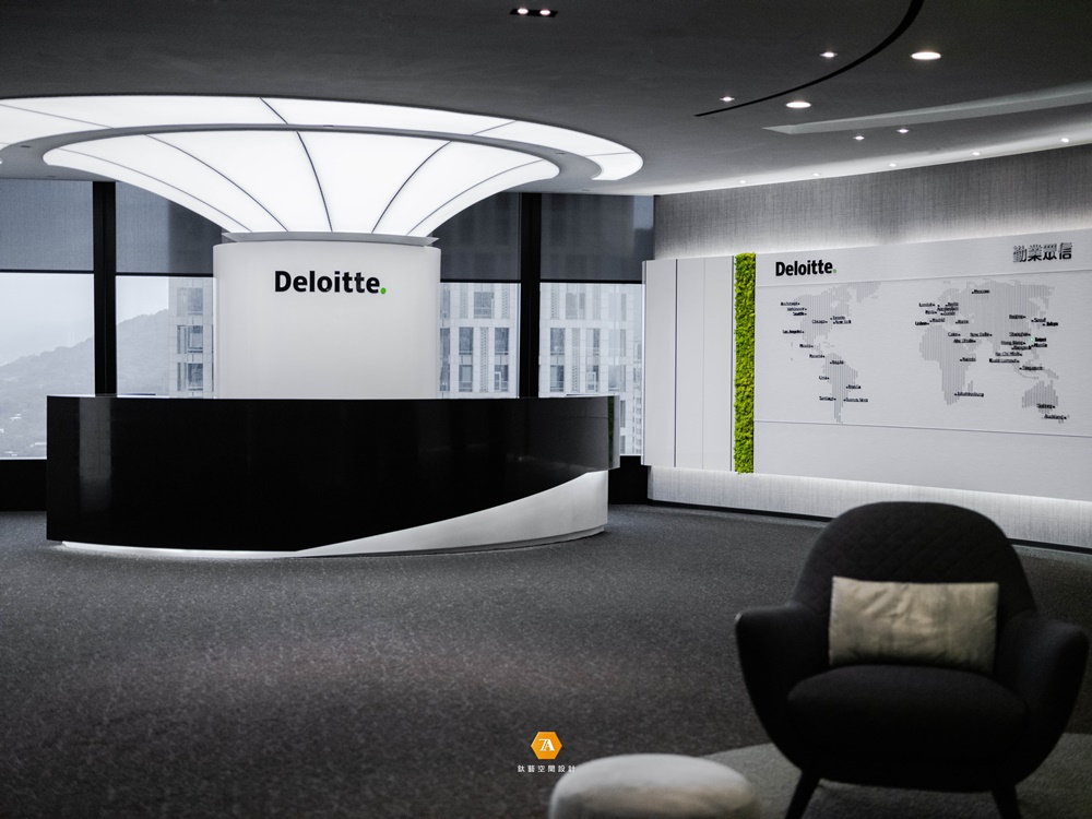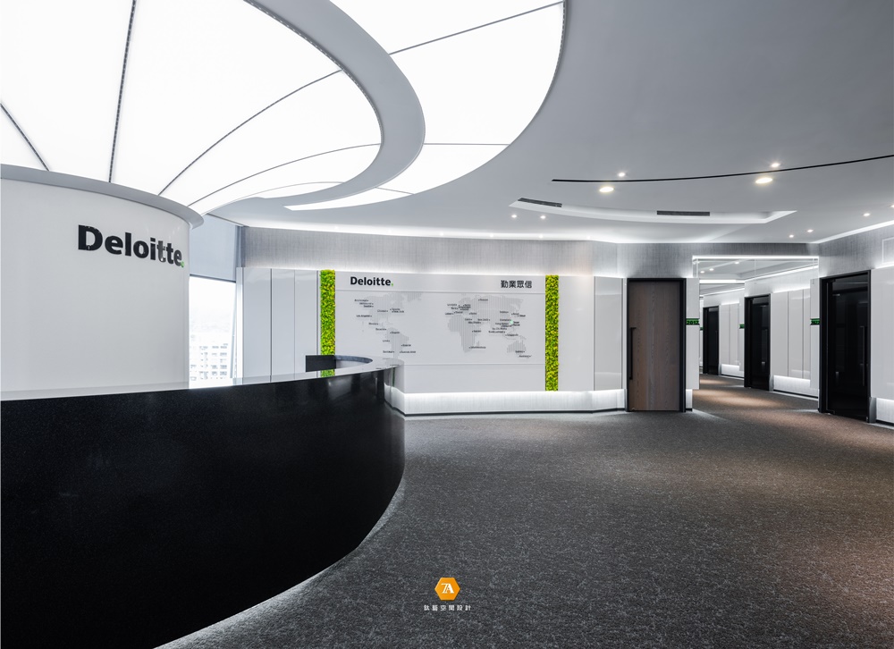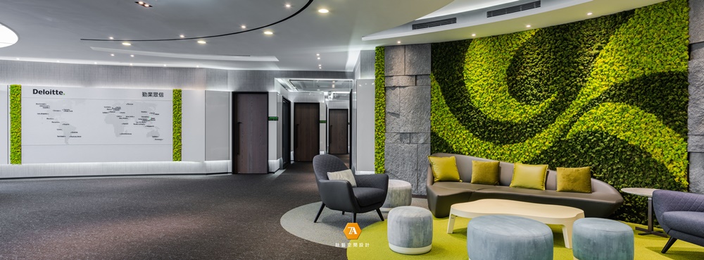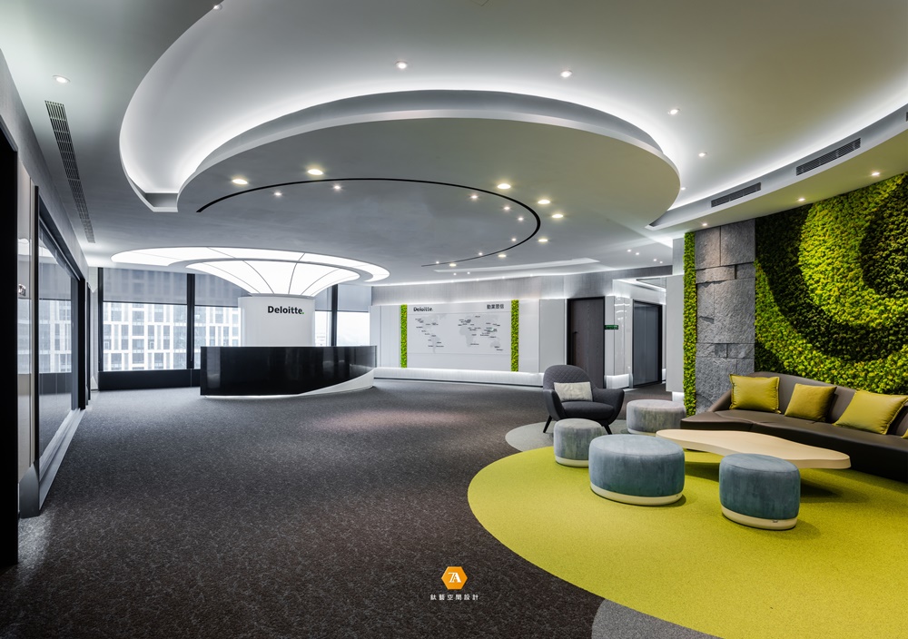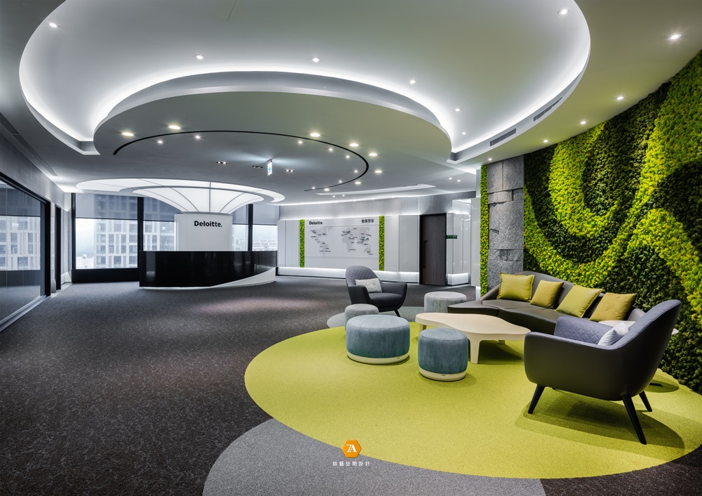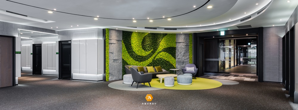 「Deloitte.」中的綠點象征品牌永續經營的理念,於場域中置入許多「圓」的意象,進而帶出圓滿、包容的品牌態度。