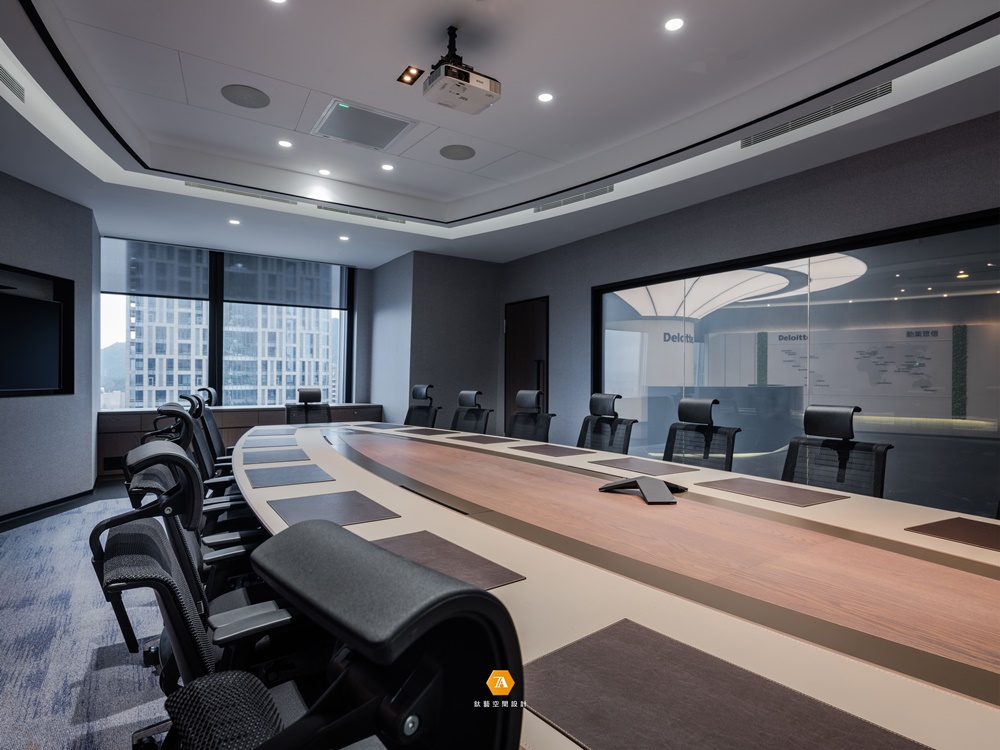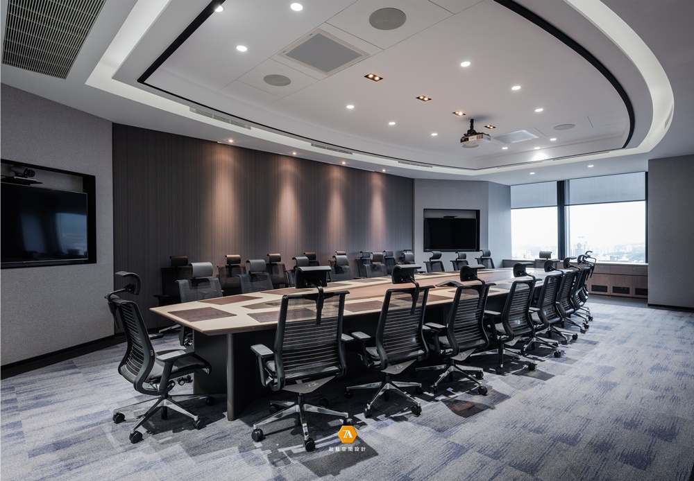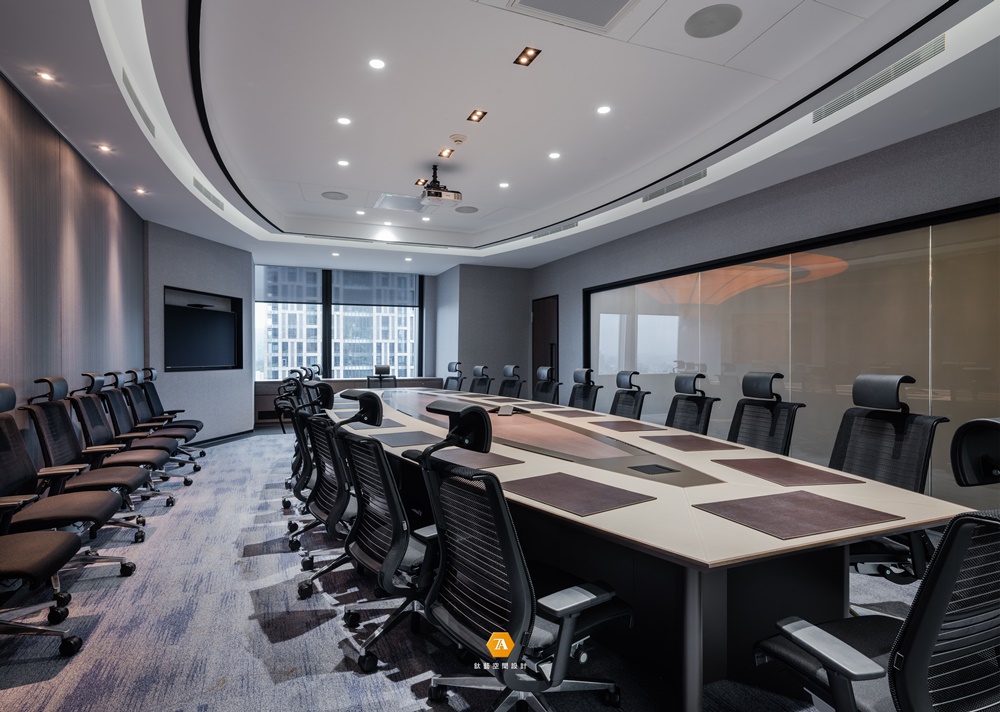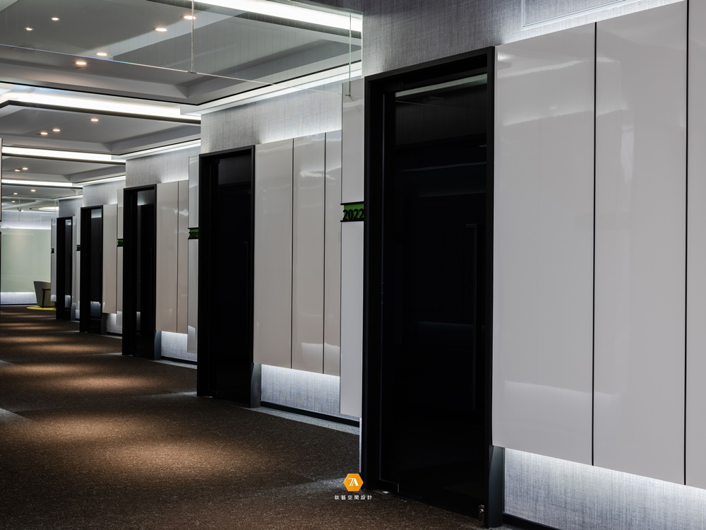 廊道沿線分布大小齊備的多間會議室,其中獨立於另一側的大型會議間,以圓弧規劃場域線條,搭配兩面開窗,使場所與戶外及大廳的綠意曲線自然相融。