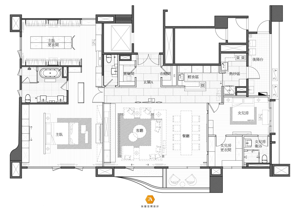 設計師不斷強調「人」與「空間」的關係,同時滿足生活品味與空間機能,打造獨一無二的人文住宅。並透過工藝的精準度與細膩的設計思維,靈活運用質材配搭;讓居家空間不再只是單一的休憩功能,賦予精神層次與空間靈魂,點綴一室寂靜美好。