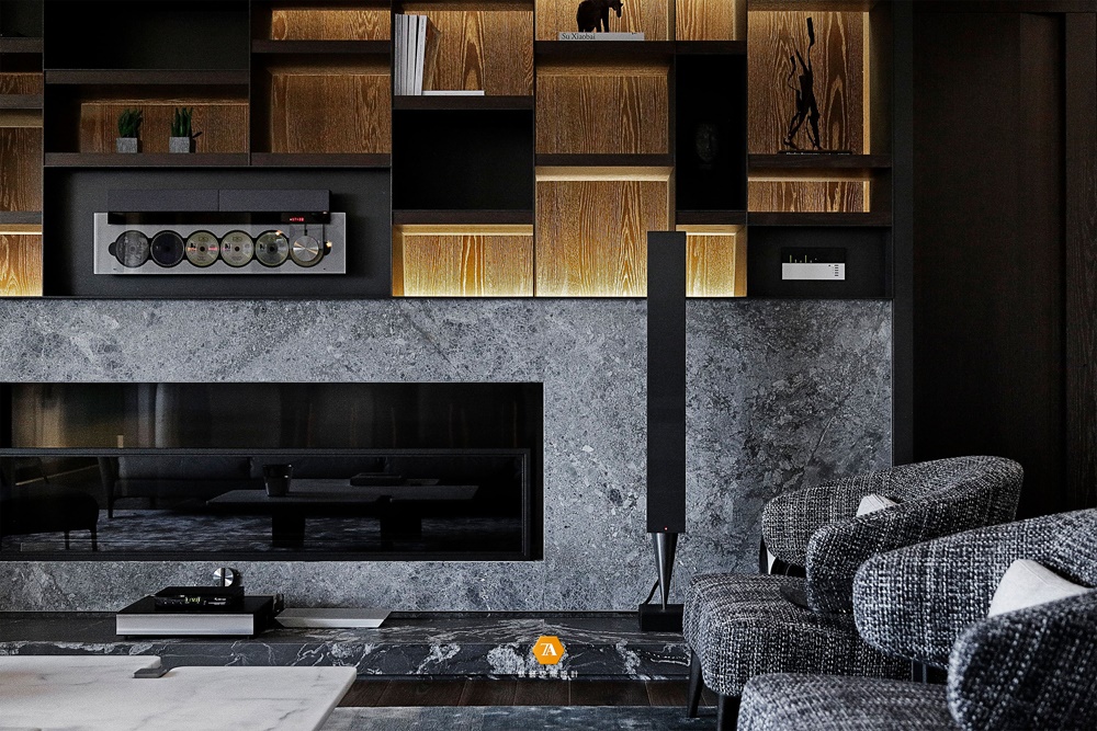 本案中,設計總監虞國倫以現代簡約風格為基調,利用結構、質材、工藝等綜合元素集合創作,來滿足視覺感官與心靈上的豐富感受。透由教堂管風琴的靈感發想,將音樂、藝術、書香交織相融,譜寫出鮮活的空間律動,磅礴內斂的氣勢流瀉而出,延伸成為精煉的動線及量體,成就無與倫比的心靈美宅。