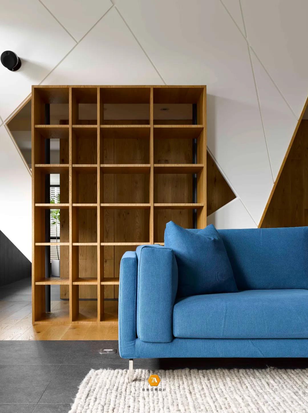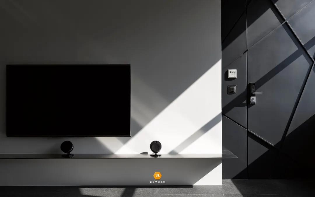 无论是客厅电视背景墙亦或是沙发背景墙,设计师都运用了线条分割造型墙面;从建筑结构到立面分割线条,设计师将之视为简化与净化情绪的过程,相对于阳光随着时序变化、进入室内的角度表情,都有自成和谐的旋律,彼此映衬、对话。