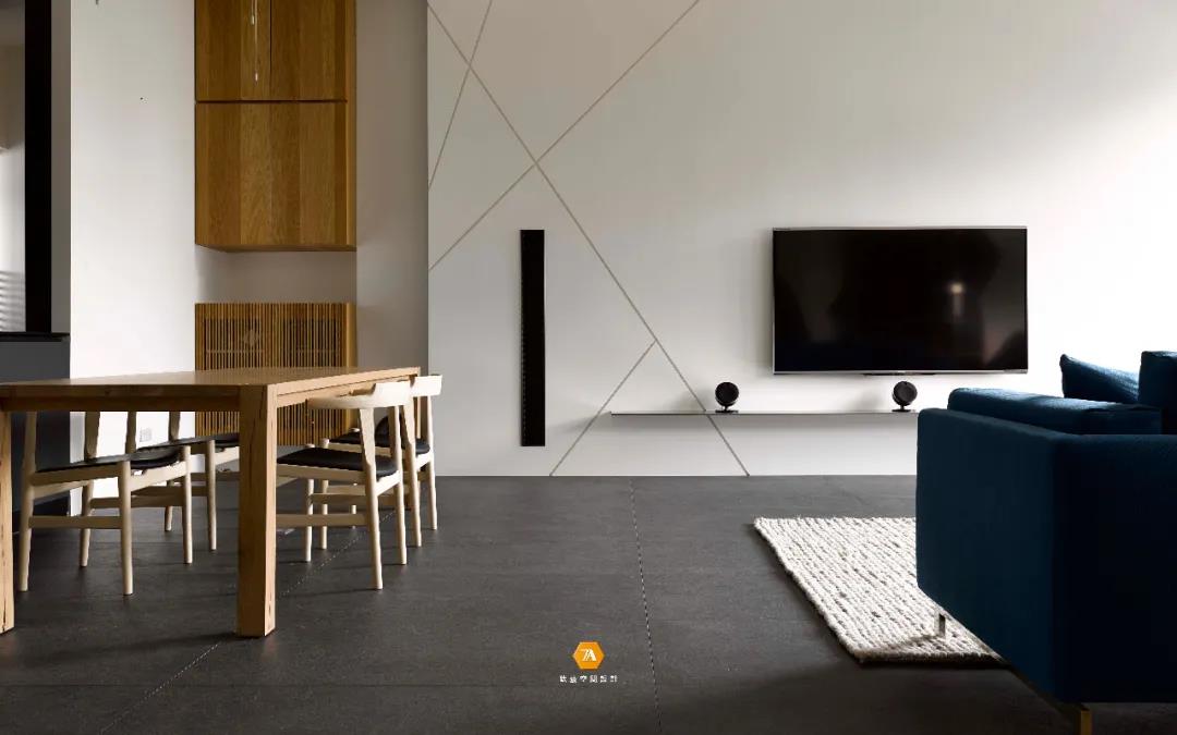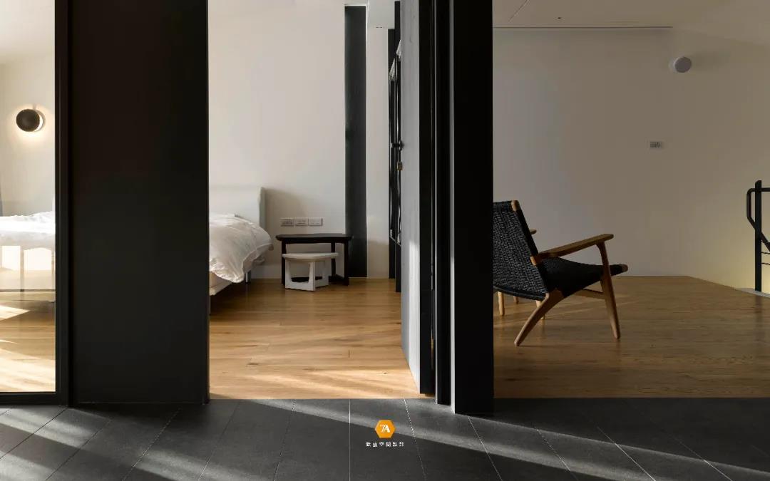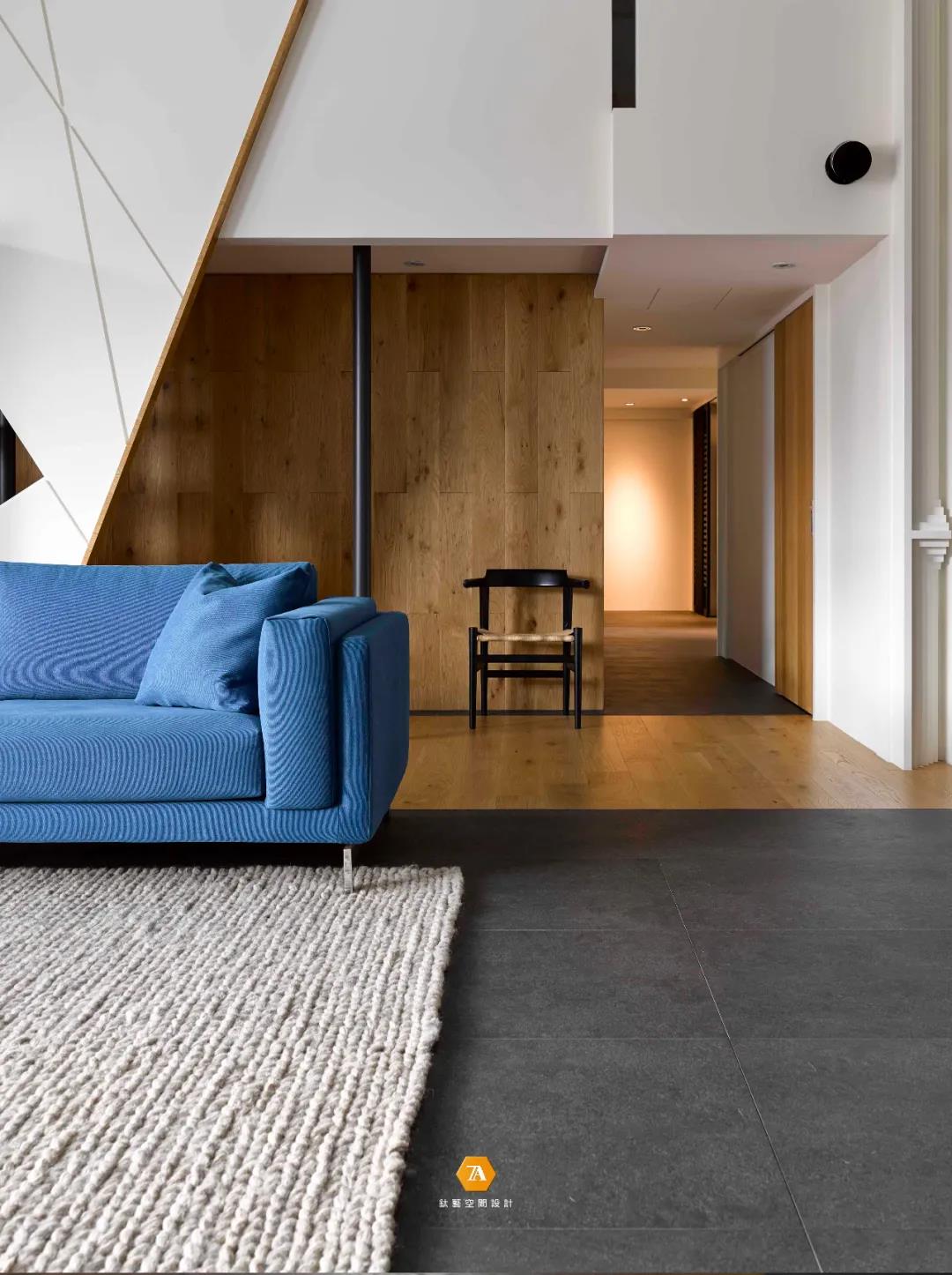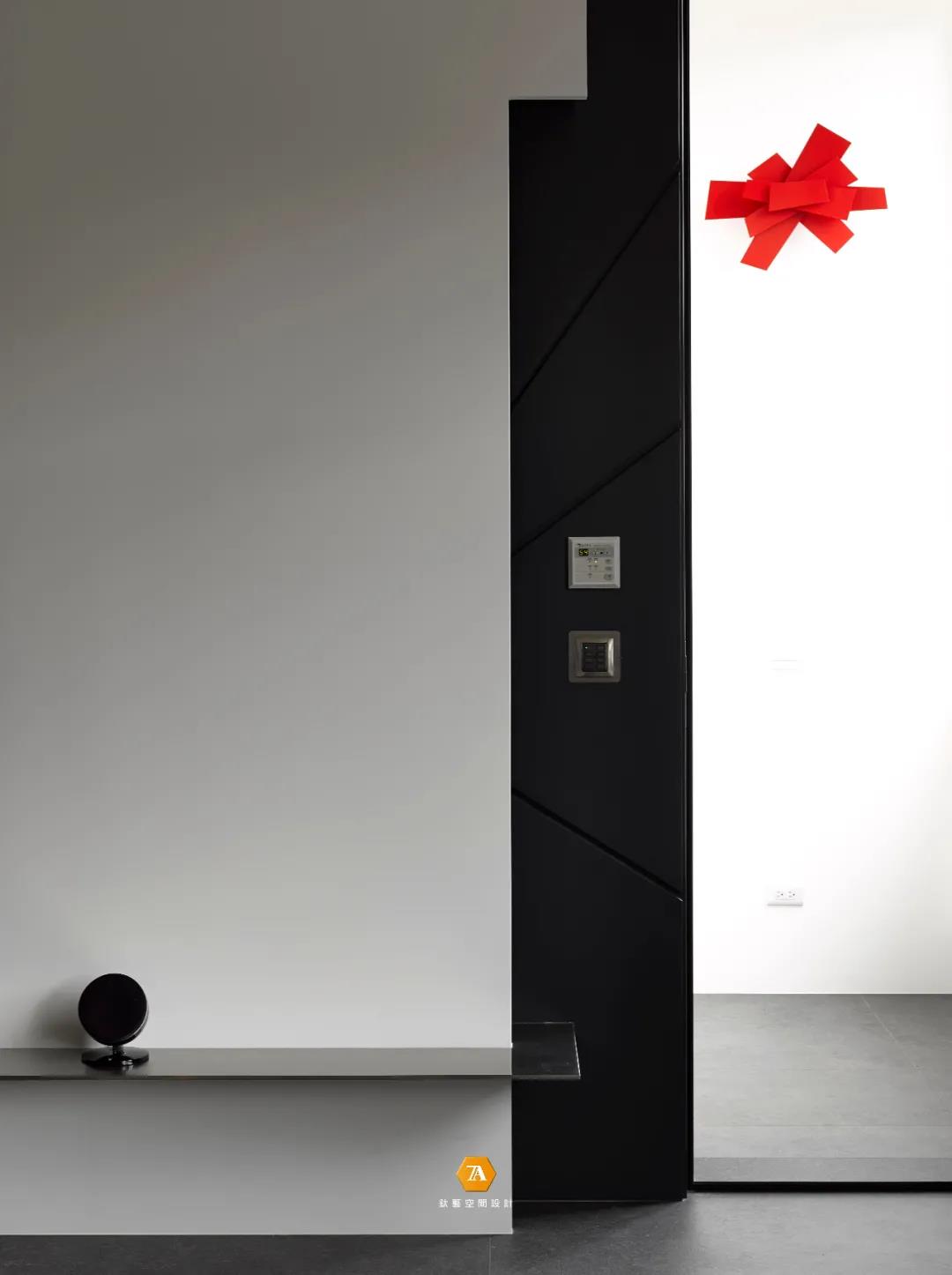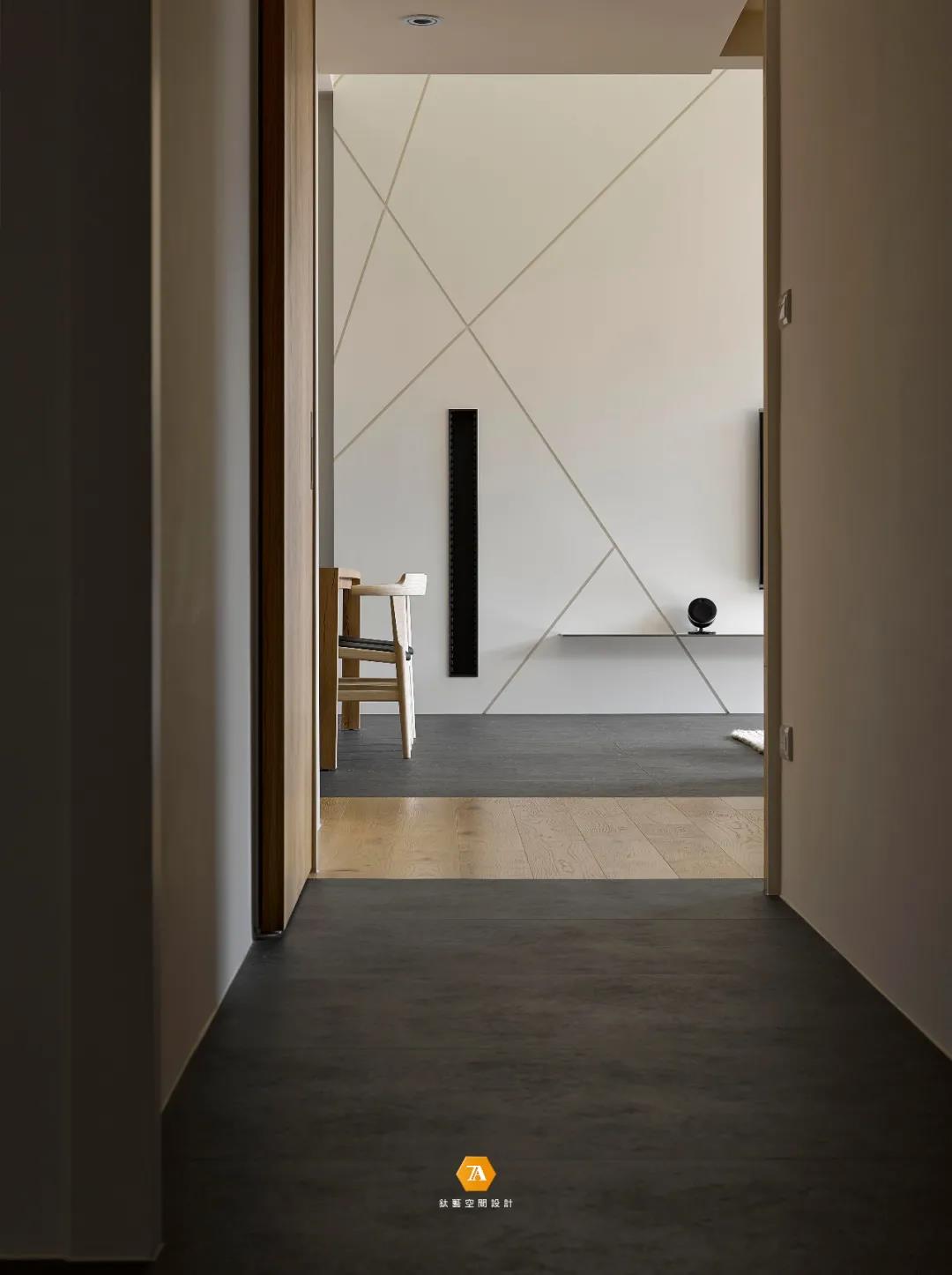 贾克 • 赫佐格曾表示「建筑必须使用所有可能的材料,以具备诉诸人类五官的强烈物理性外表。」即主张建筑重于「视觉、触觉、听觉。」设计总监 洪文谅 正是从中得到启发,在本案一挑高单层住宅中,退去风格语汇的八股表现,用线条立面引申出绝对自我的生活意识,在理性与感性之间,彰显或收敛自主表现,简化媒材,强调「隐秩序」的概念。