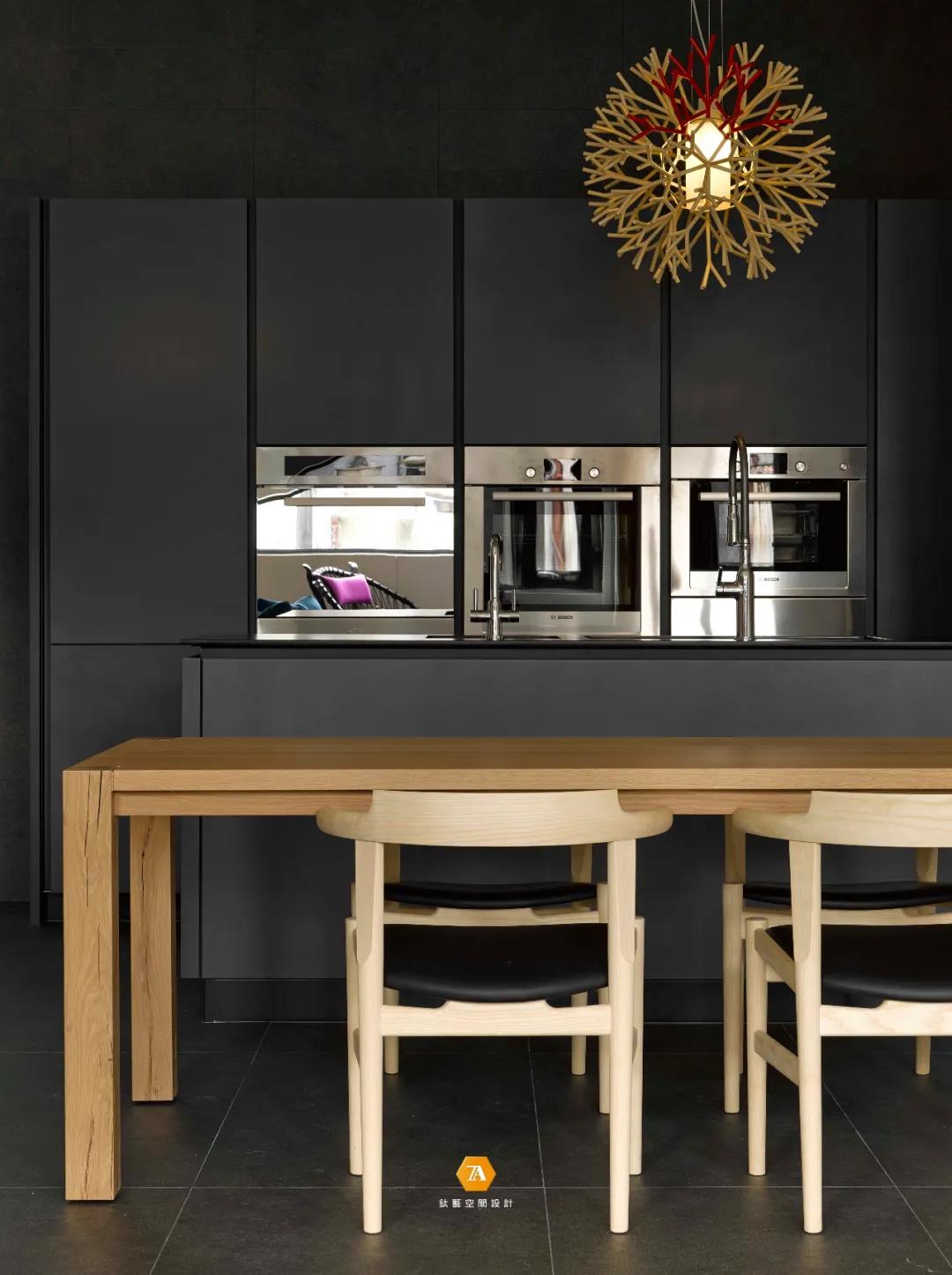 厨房材质是在需要与不需要的考虑后,呼应地坪质材以秩序性的方式呈现,不靠材质的特性或颜色的加持,这也反映出一种无争的生活态度。
