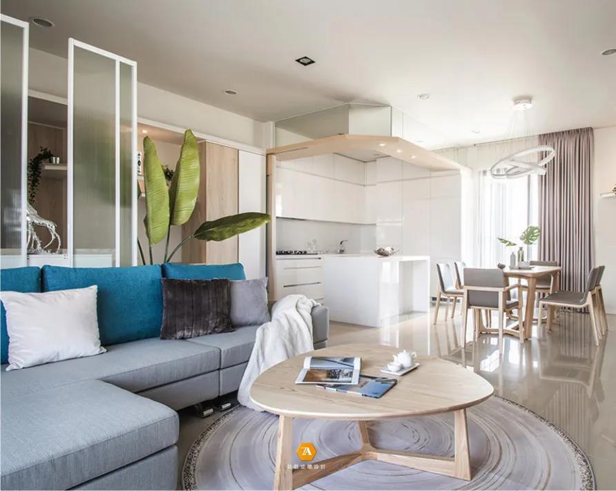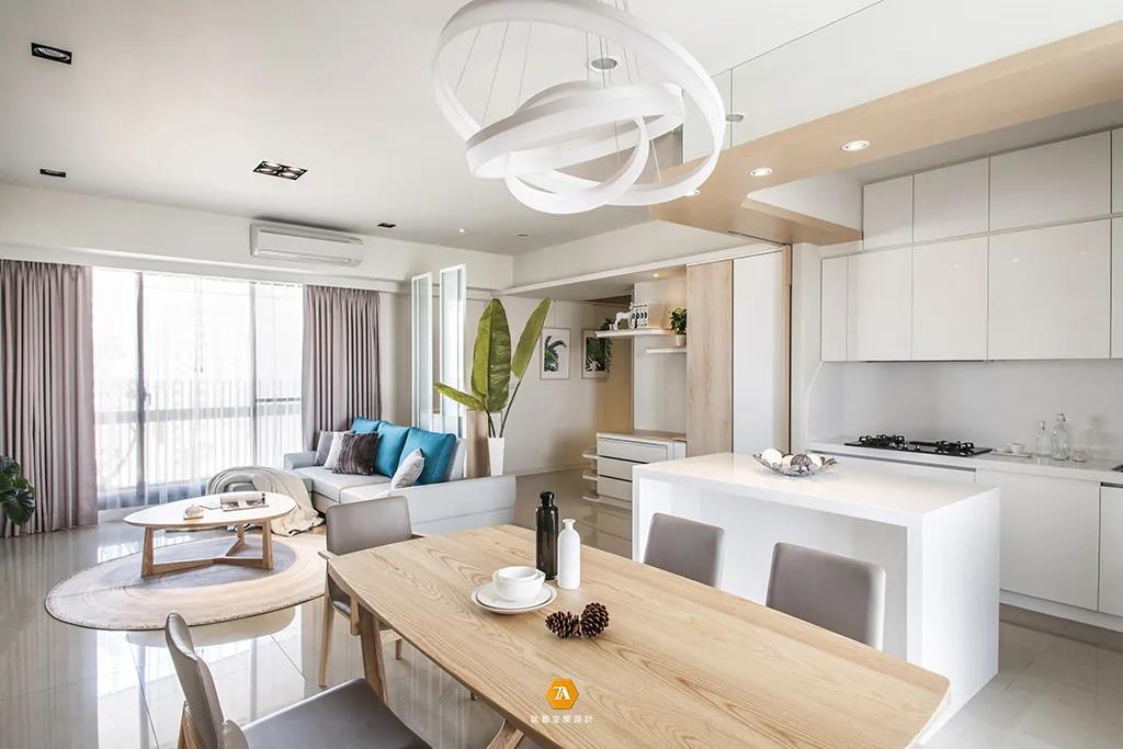 因此,設計總監 龍世運 藉由單純的白與原木材質的表現,使得灰白水泥都市中,呈現出一處自然舒適的清新空間,放松居於都市叢林之中的居者壓力,細細品味屬於清新自然的空間氛圍。