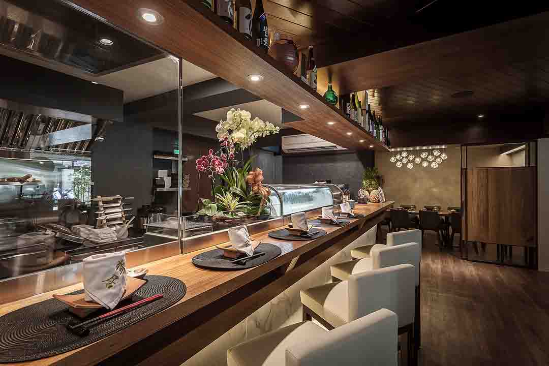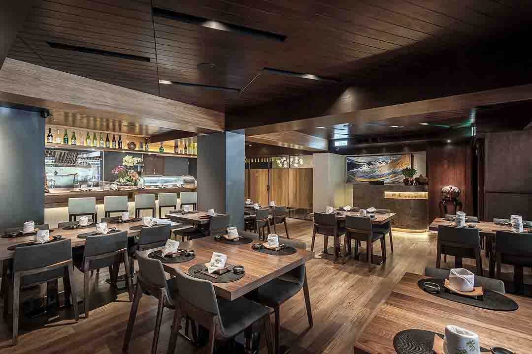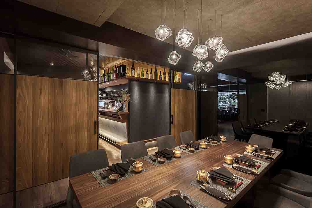 我们将厨房与板前区连接,在日料纯正血统中,板前向来是最为重要的食用佳地,它是板前食客对料理艺术的直接接触,也是板后料理长对食客需求直接订制和对料理文化的直观传输。直接保证了食材用最少时间送至食客面前,新鲜一直是日料非常重要的追求之一,哪怕是分秒之差。以半开放的形式展现板前区域的特殊性,也是唯一被我们打开来呈现的“礼物盒”。