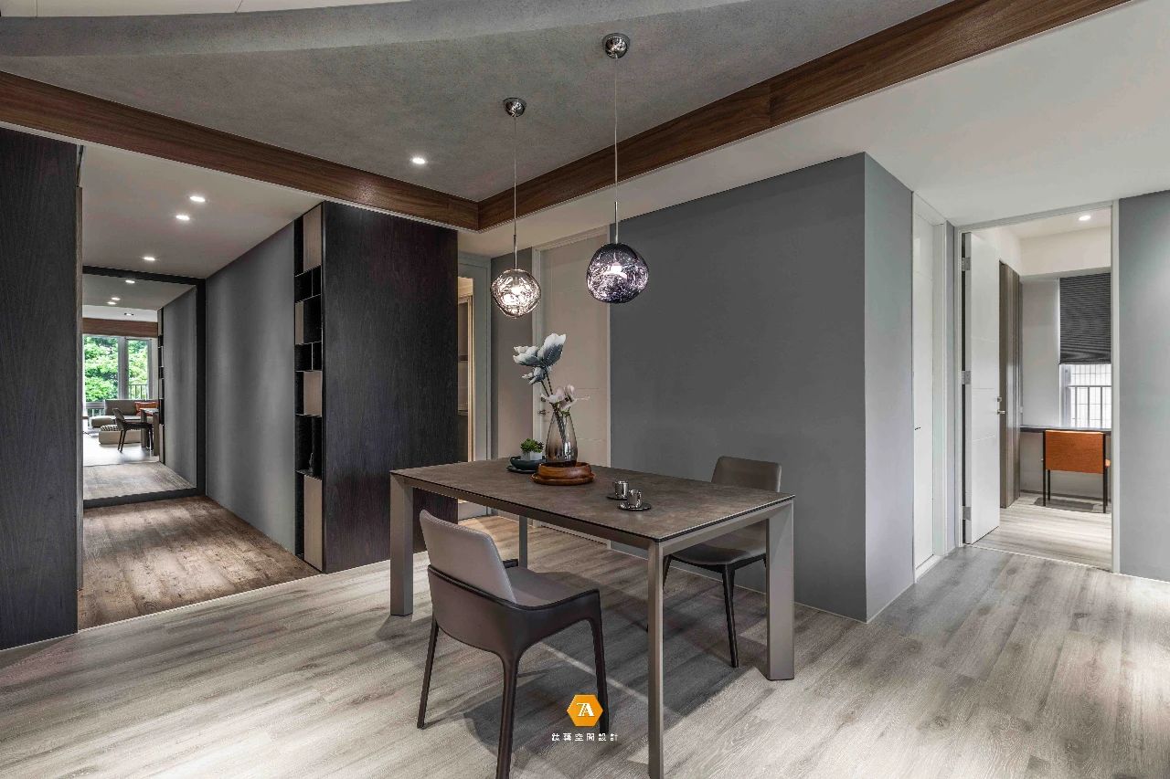 客廳沙發的後方,設計師規劃為一個開放式的書房,活動式的書桌,可以根據屋主對於空間功能需求的不同,進而改變。而由餐廳一直延伸至書房的灰色仿清水塗料,則是以最簡單的方式,將空間再次合為一體,同時又頗具時尚美感的設計手法之一。