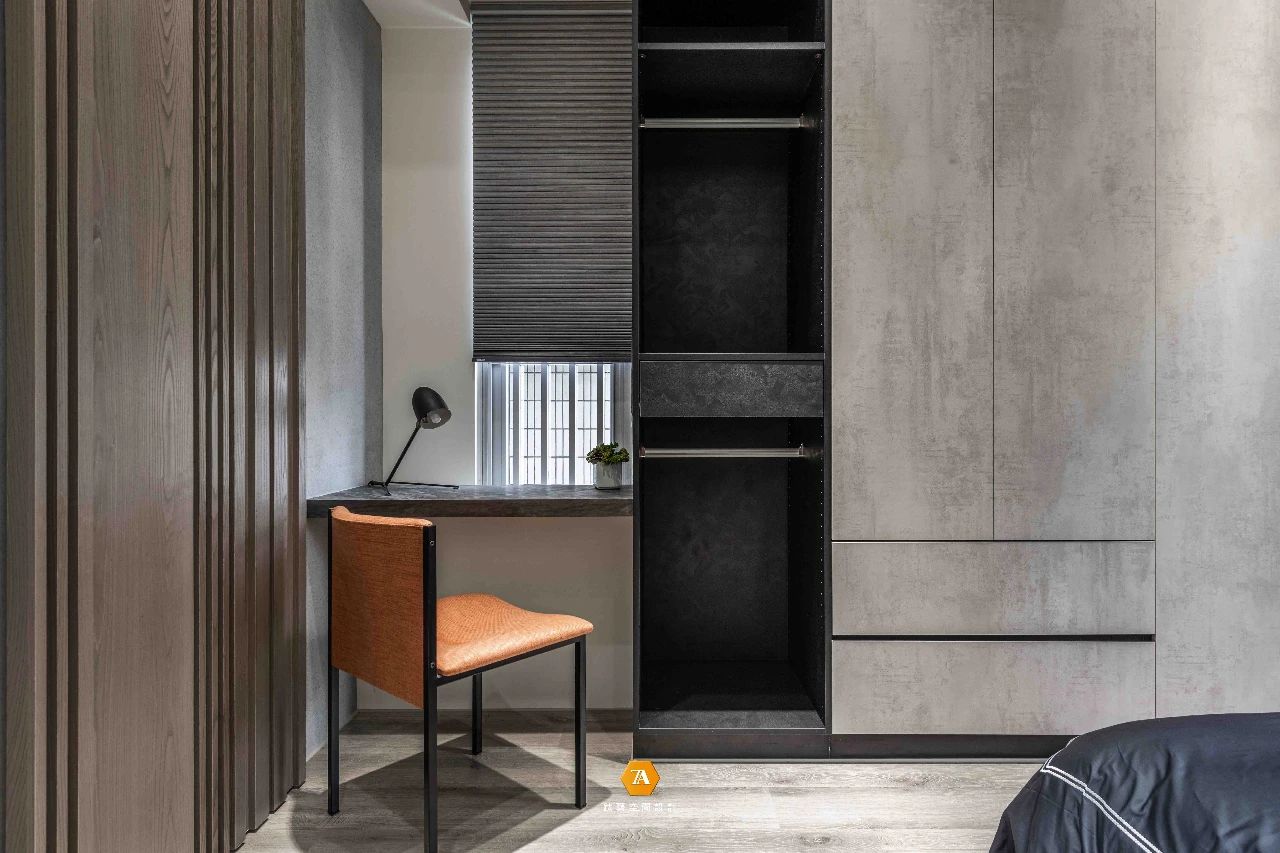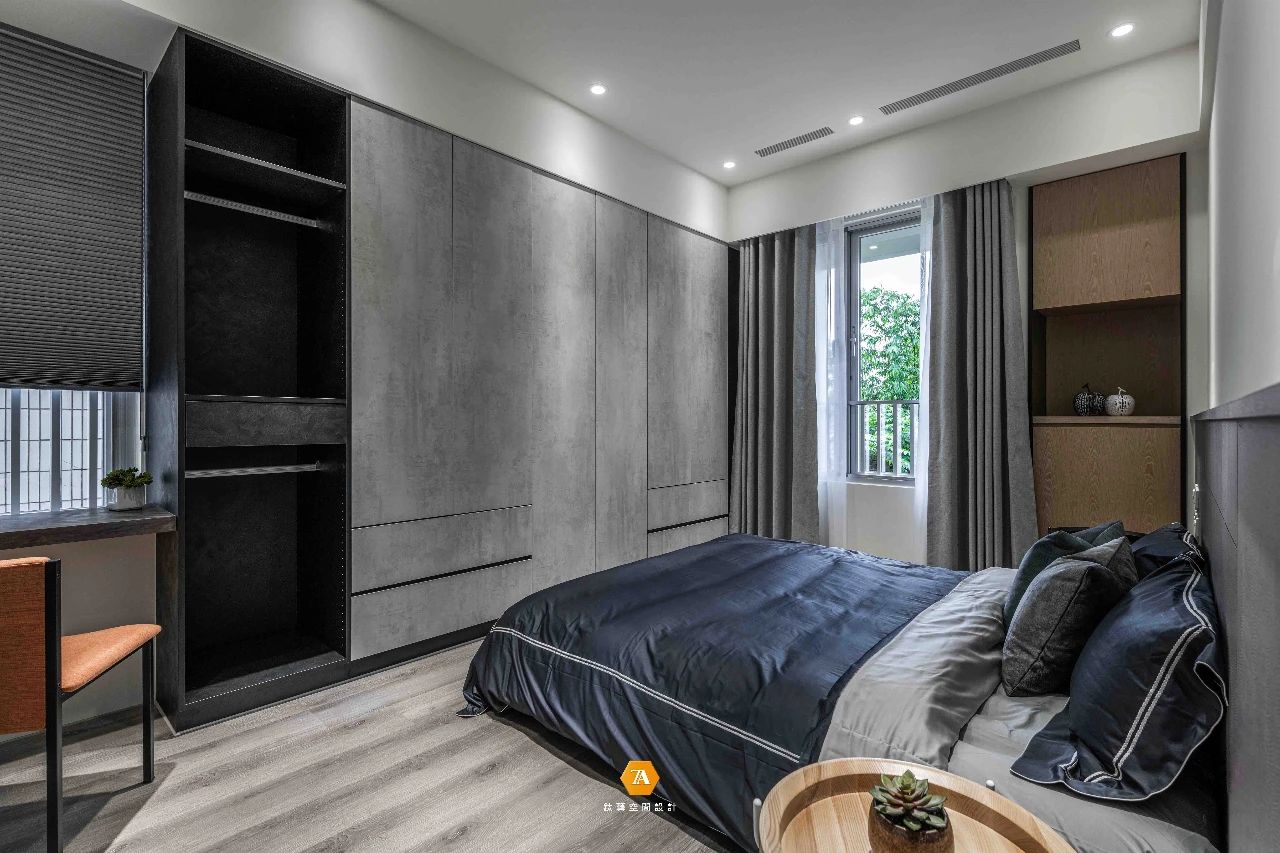 主臥室整體延續了客餐廳色調,使得人無論在何處空間之中,都保持一致的感受;空間之中沒有過多復雜的裝飾,設計師透過櫃體的飾面以及墻面塗料來表現空間的質感,簡單之中突顯出不簡單,細節之中,展現非凡。